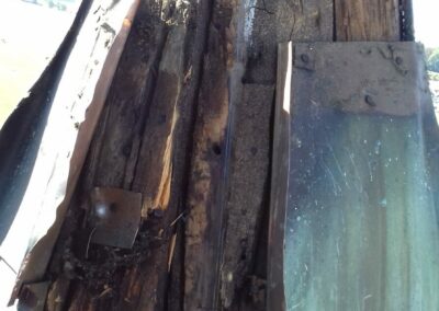 Das Holz war durch Zeit und Feuchtigkeit stark beschädigt, und die Metallteile waren von Rost angegriffen.
