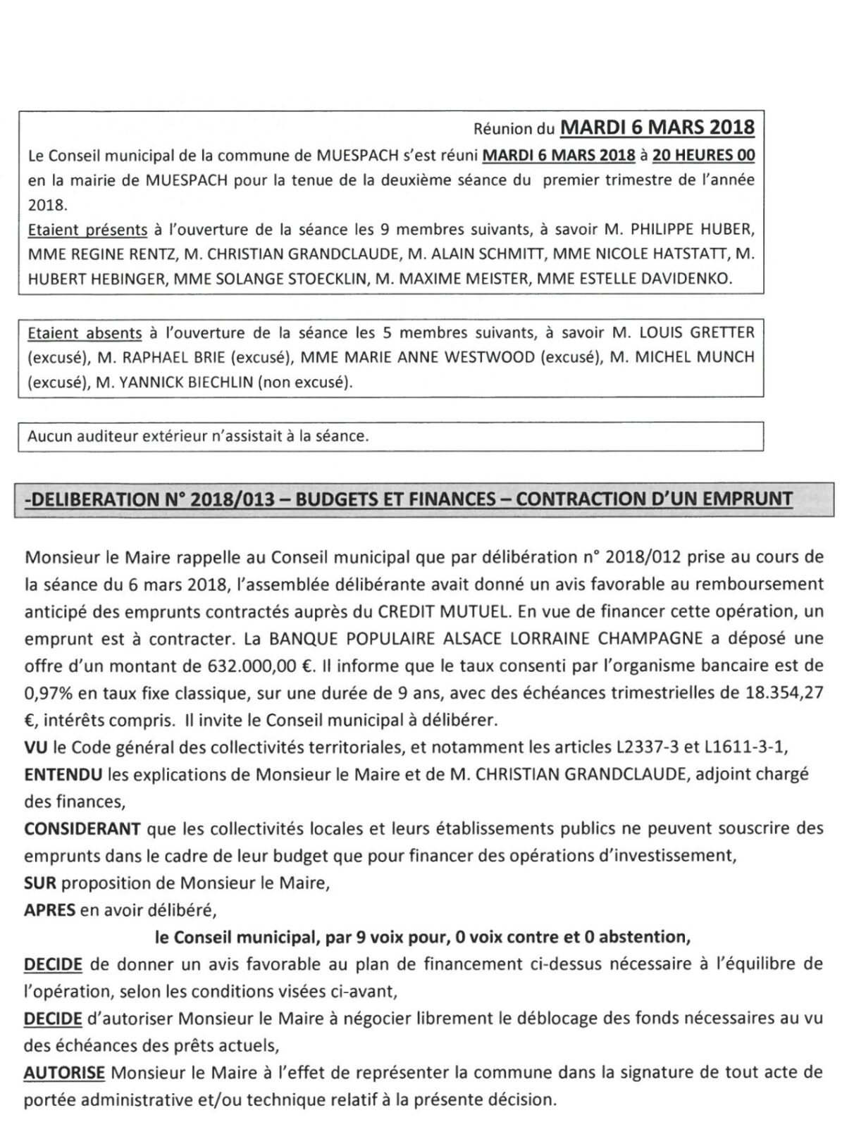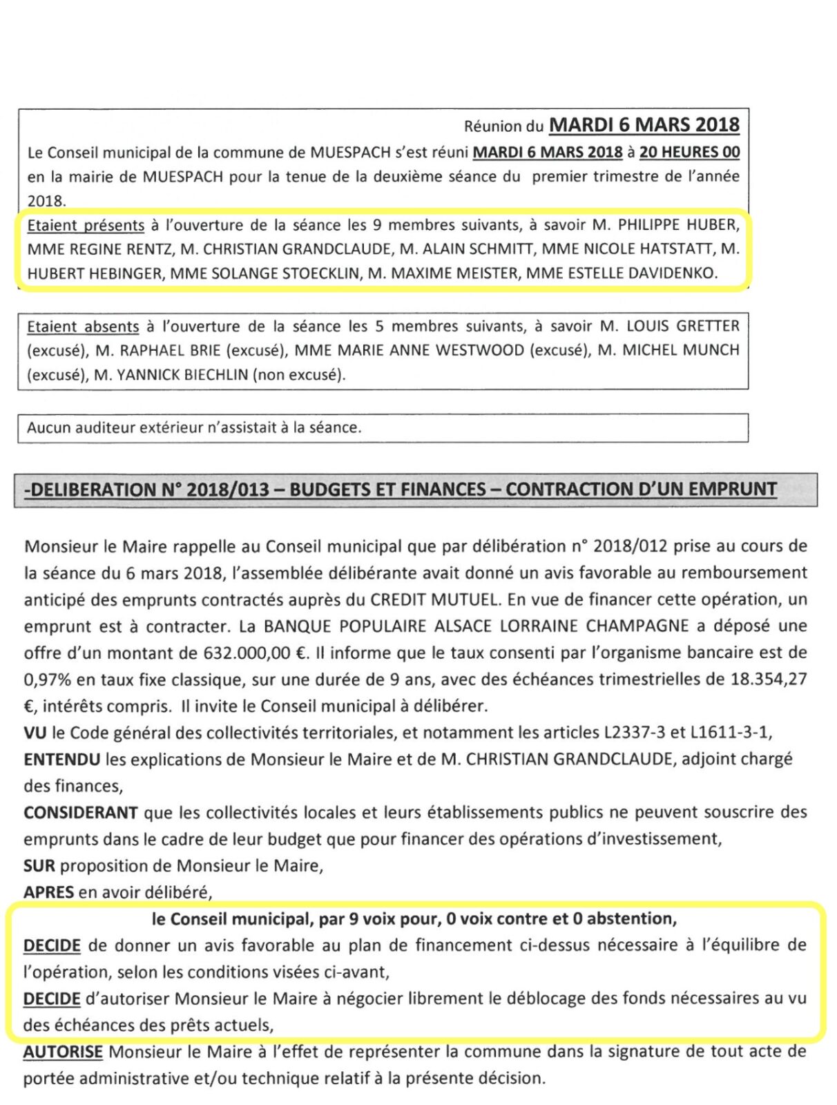 Malgré cette alerte, la délibération a été soumise au vote et l’ensemble des conseillers municipaux a participé au vote, y compris des conseillers sociétaires de la banque ou conjoints de sociétaires, ainsi que Madame le Maire elle-même.