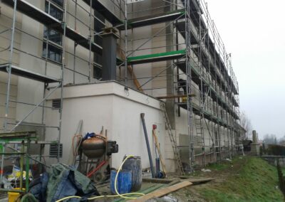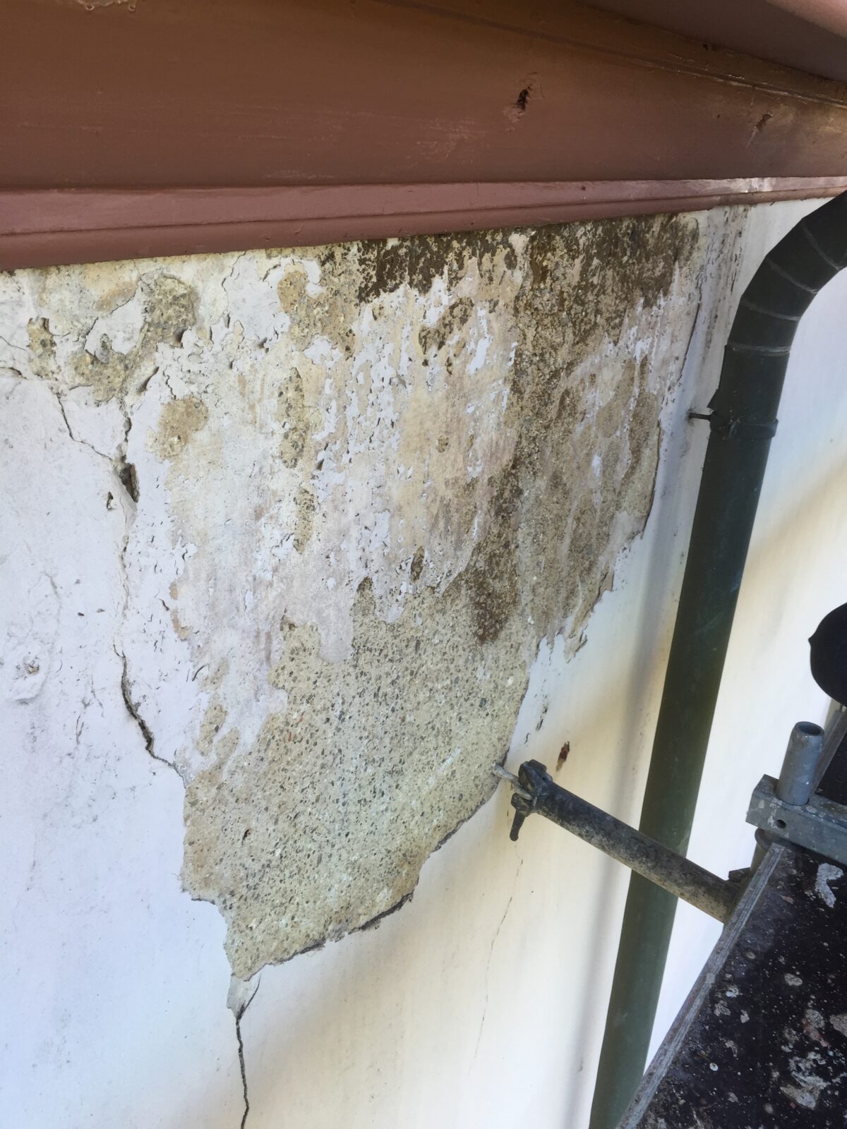 À la fin de l’année 2014, l’état du crépi extérieur nous a alertés. Nous constations :