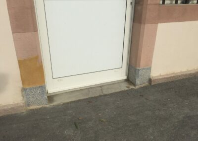 la base des pieds-droits en grès de la porte d’entrée de la sacristie a été entièrement restaurée.