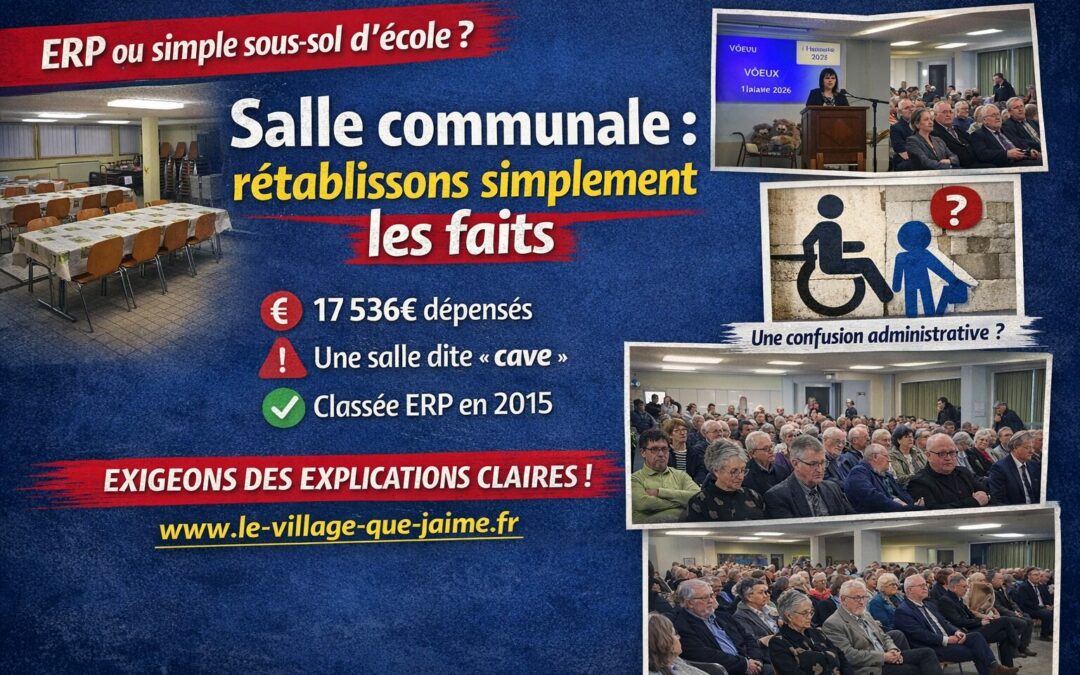 Le bilan municipal de l’équipe sortante indique qu’une somme de 17 536 € a été dépensée pour améliorer la salle communale (acoustique, équipements, stores).