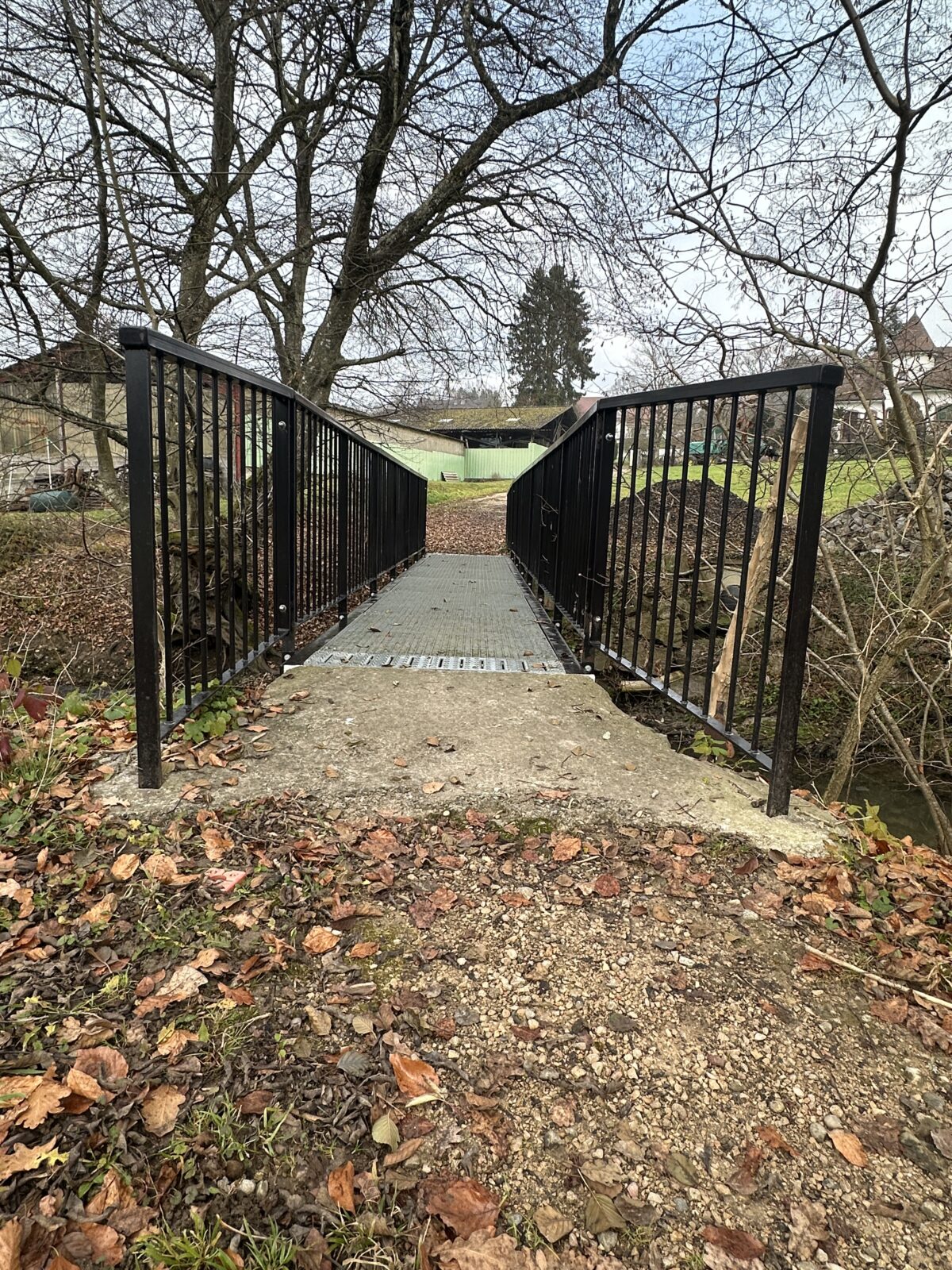 L’ancienne structure, devenue fragile, a été remplacée par une passerelle en acier galvanisé, conforme aux normes actuelles et conçue pour durer dans le temps.
