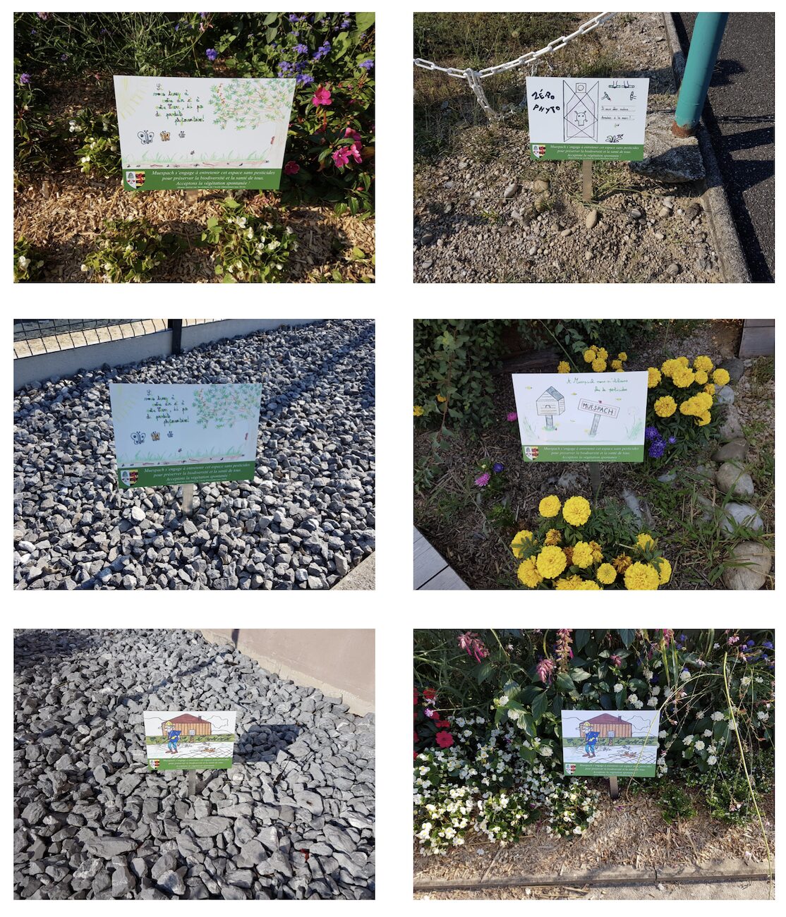 Les dessins sélectionnés ont ensuite servi à la réalisation de plaques signalétiques, installées à différents endroits du village.